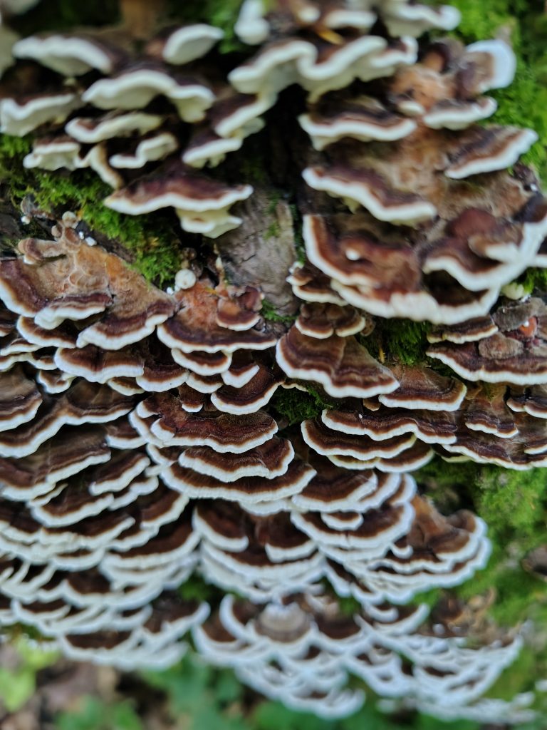 I have been learning about herbs and the medicinal properties of plants and mushrooms. This is a picture of the turkey tail mushrooms I collected.